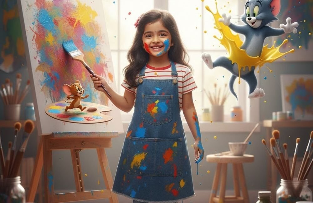 Aanya at Tom & Jerry — Art‑Studio Paint Splash