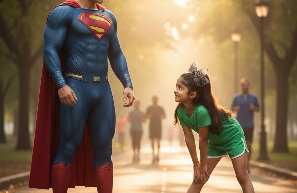 { “image_generation”: { “reference_image”: { “enabled”: true, “instruction”: “Use the uploaded face {uploaded_face} exactly as replacement image (identity lock) ; preserve 100% accuracy” } }, “prompt”: “Superman — Park Jog & Stretch — Use the uploaded face {uploaded_face} exactly as replacement image (identity lock) ; preserve 100% accuracy as replacement image. Always include the uploaded human training with photorealistic Superman. Create a hyper‑realistic 8K square image. Location: tree‑lined city park path at morning light. Wardrobe: athletic kit (tee, shorts, trainers). Pose & action: performing a hamstring stretch with focused smile. Activity: Superman demonstrates a dynamic warm‑up while you mimic the stretch—your steady form and his encouraging posture create an inspiring fitness moment (complementary action). Camera: 35mm‑equivalent action mid‑shot with soft motion freeze. Lighting: warm morning rim. Mood: motivating, healthy. No text or watermark.” }