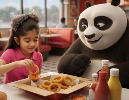 Aanya hugging Kung Fu Panda