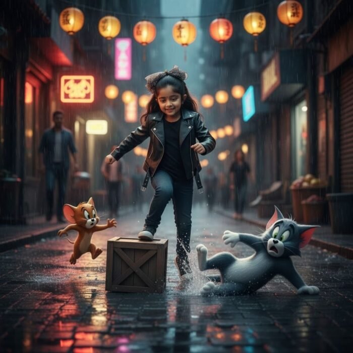 Kids Image PromptsTom and Jerry Image Prompts Aanya with Tom & Jerry Performing Skateboard Park Trick